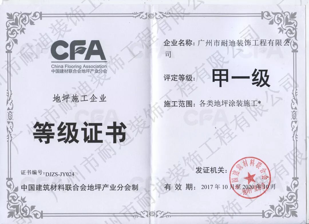 《地坪施工企业甲一级》证书