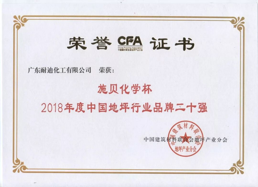 2014-2018年 地坪行业品牌前20强